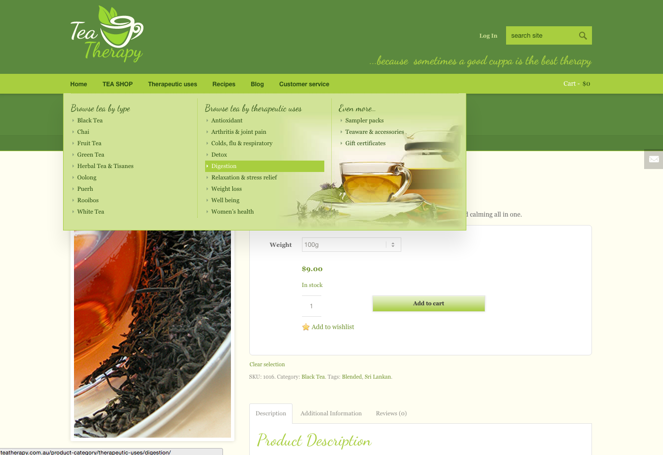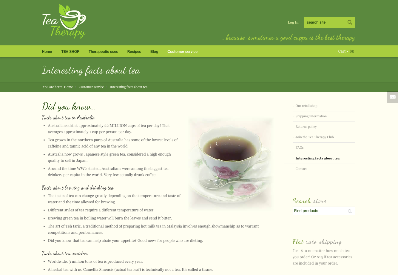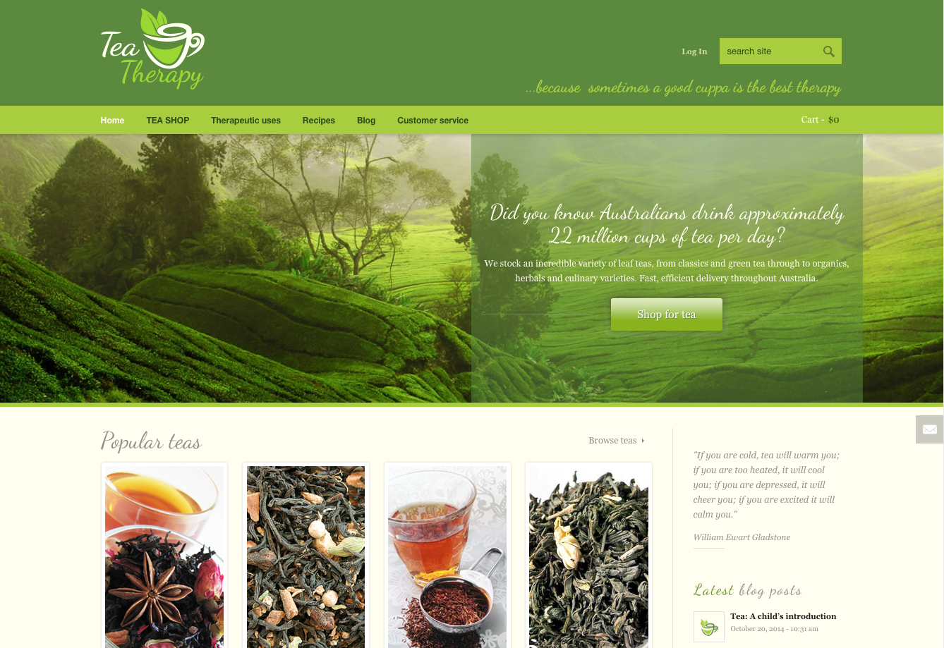 Design of an online store selling specialist tea.